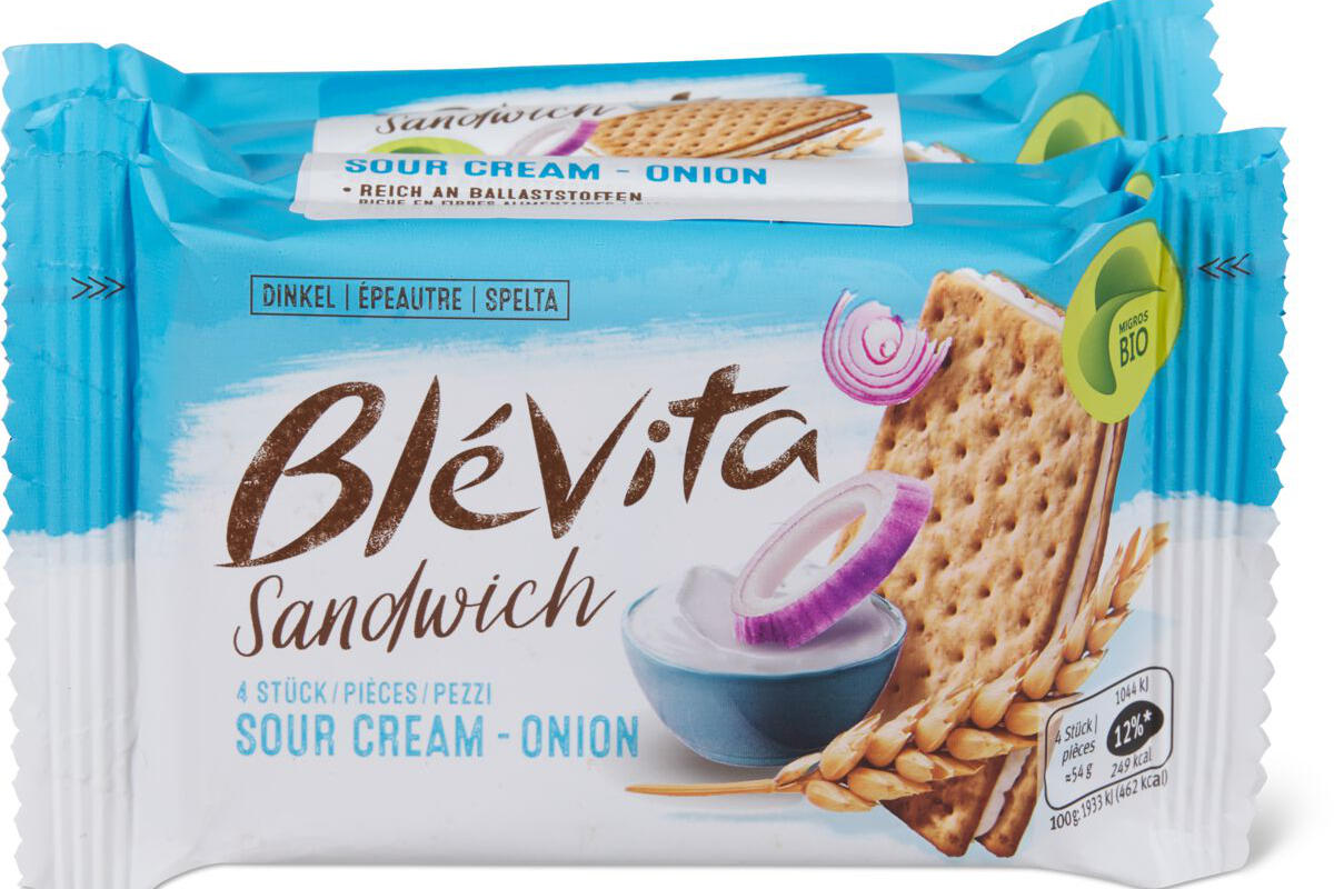 Blévita Sandwich Sour Cream-Onion kann Salmonellen enthalten und wird deshalb zurückgerufen. (Bildquelle: Migros)