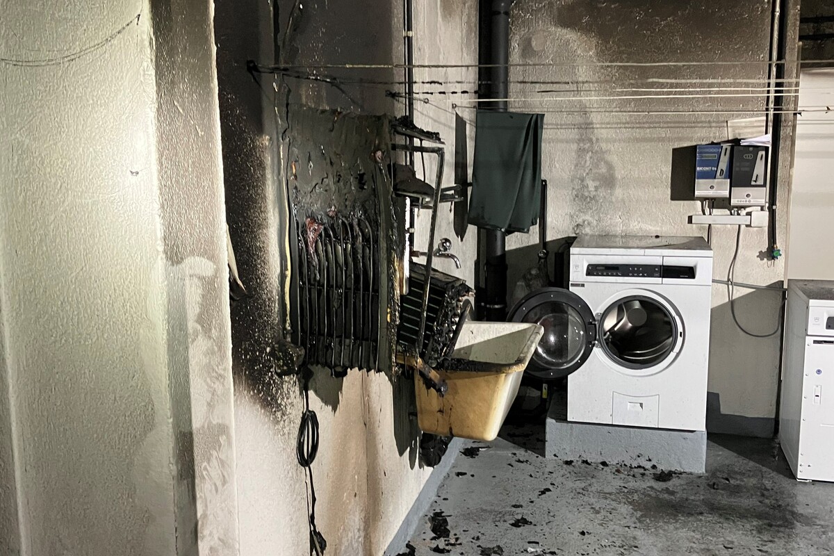Aus noch ungeklärten Gründen kam es in der Waschküche des Wohnhauses zu einem Brand. Ein Bewohner hatte Rauch im Treppenhaus bemerkt. In der Waschküche sah er, dass der Rauch aus dem an der Wand montierten Luftentfeuchter aufstieg. In der Folge wurde der Feuerwehrnotruf verständigt und die Bewohner begaben sich nach draussen.