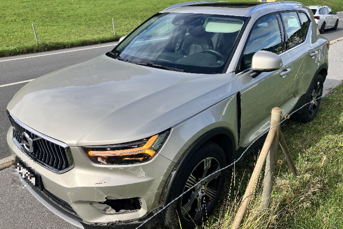 Der Volvo des 82-jährigen Mannes kollidierte mit dem Strassenzaun. (Bildquelle: Kantonspolizei Glarus)