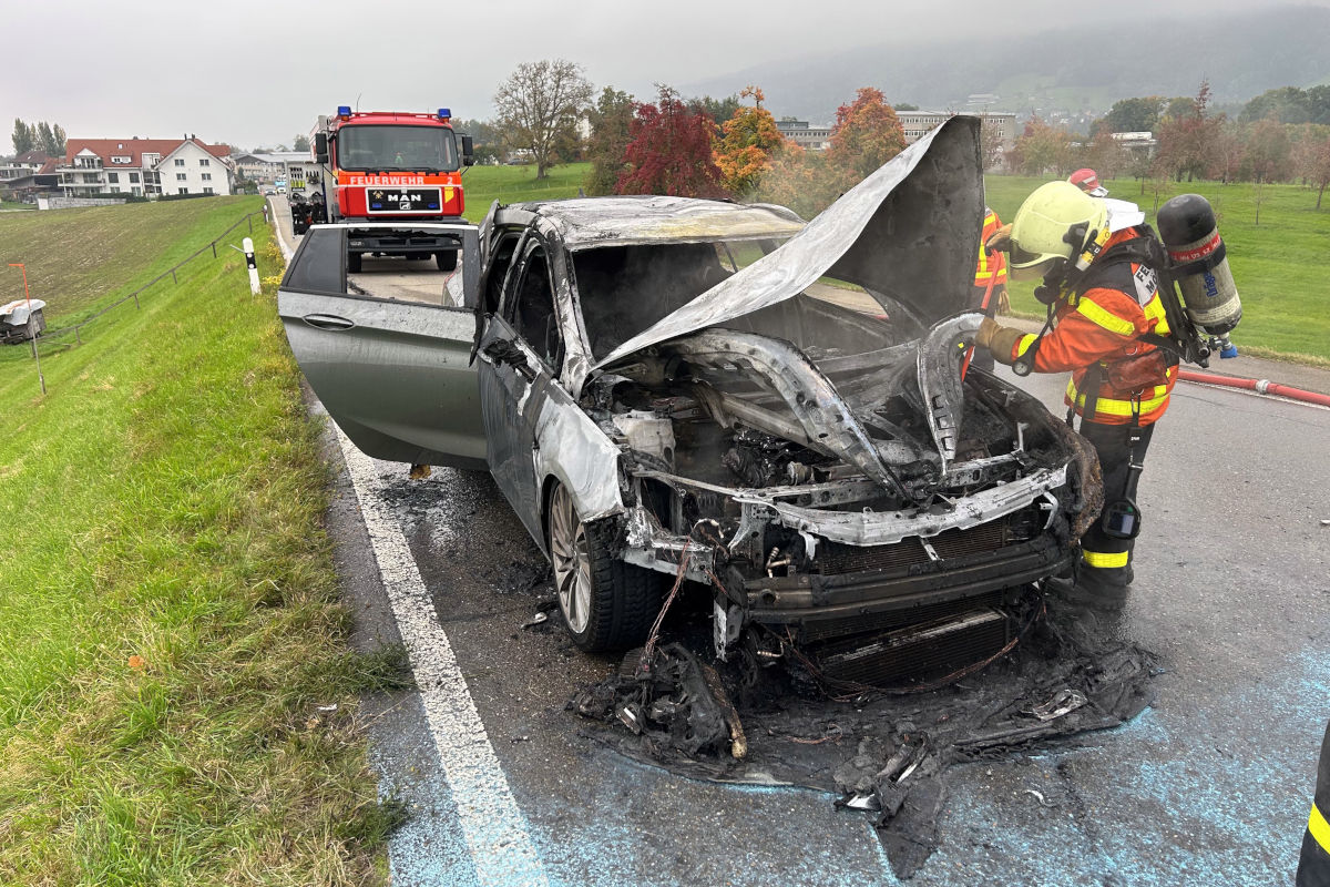 In Mörschwil geriet am Donnerstag, 9. Oktober 2025, ein Auto während der Fahrt in Brand. Der 39-jährige Fahrer wurde leicht verletzt und ins Spital gebracht. Als Ursache wird ein technischer Defekt vermutet.