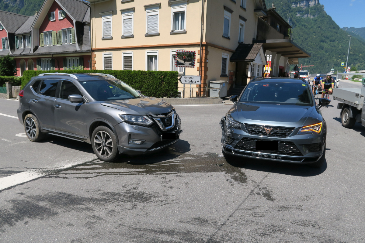 Am Samstag, 10. Juli 2021, ca. 1150 Uhr, ereignete sich bei der Kreuzung Kanalstrasse / Bahnhofstrasse in Mollis ein Verkehrsunfall zwischen zwei Personenwagen.