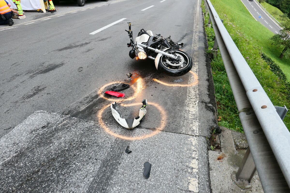 Der Motorradfahrer wurde bei dem Unfall verletzt (Bildquelle: Kantonspolizei Glarus )