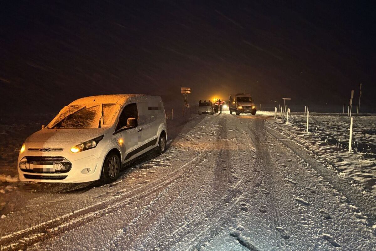 Sie bremsten ab, stellten den Blinker und kamen zum Stillstand. Der 27-Jährige erkannte dies und begann ebenfalls abzubremsen. Aufgrund der Sommerbereifung verlor sein Lieferwagen die Bodenhaftung und rutschte in Richtung der beiden stehenden Fahrzeuge.