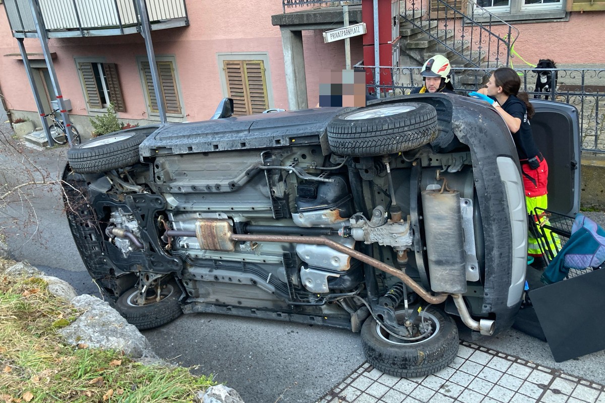 Dabei missachtete sie ein Fahrverbot und kam schliesslich vor einer geschlossenen Schranke zum stehen.. Als die 69-Jährige mit ihrem Auto zurücksetzen wollte, lenkte sie zu früh nach rechts ein und fuhr auf eine angrenzende Wiese. Das Auto geriet ins Rutschen und kippte schliesslich langsam über eine Mauer.