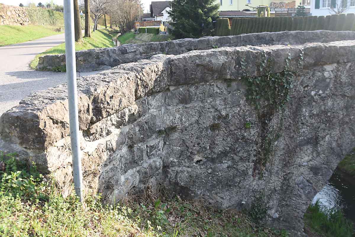 Dort touchierte die Pedale die Brückenmauer. Der Mann verlor das Gleichgewicht und fiel über die Brückenmauer auf das steilabfallende Wiesenbord.