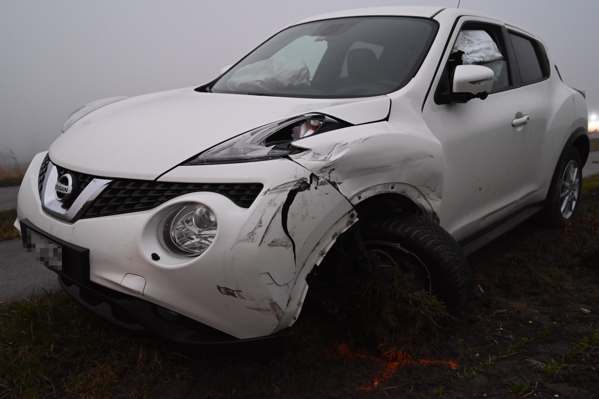 Der beschädigte Nissan des 23-jährigen Lenkers (Bildquelle: Kantonspolizei St.Gallen)