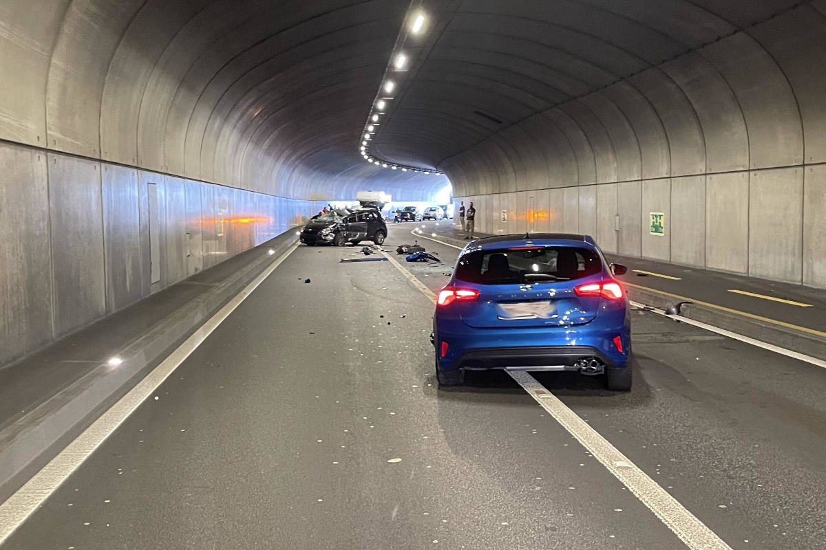 Am Donnerstag, 11. August 2022, ereignete sich im Ölbergtunnel auf der Axenstrasse in Morschach um 16.30 Uhr eine Frontalkollision zwischen zwei Personenwagen.
