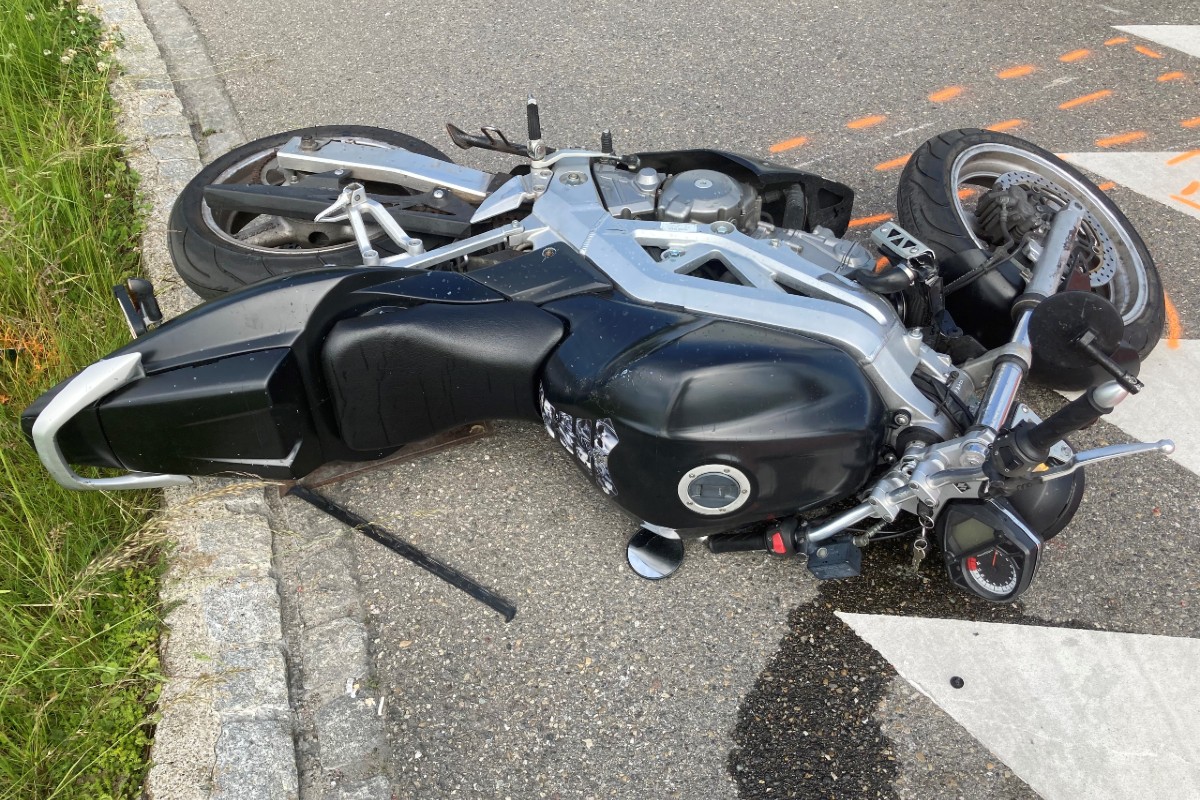 Motorradfahrer verletzt sich nach Unfall in Münchwilen TG. (Bildquelle: Kantonspolizei Thurgau)