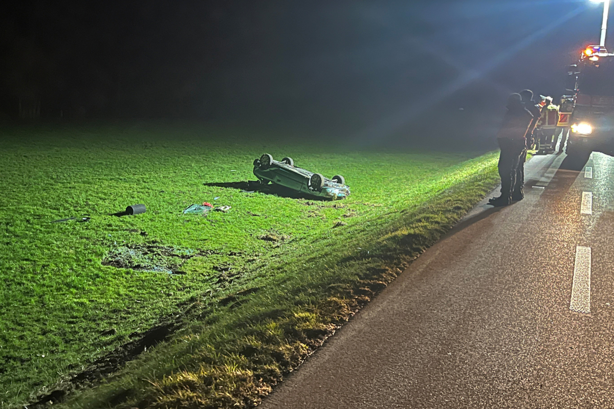 Kurz vor 2 Uhr ging bei der Kantonalen Notrufzentrale die Meldung ein, dass Ausgangs Müllheim ein Auto auf dem Dach neben der Strasse liege, aber niemand vor Ort sei.