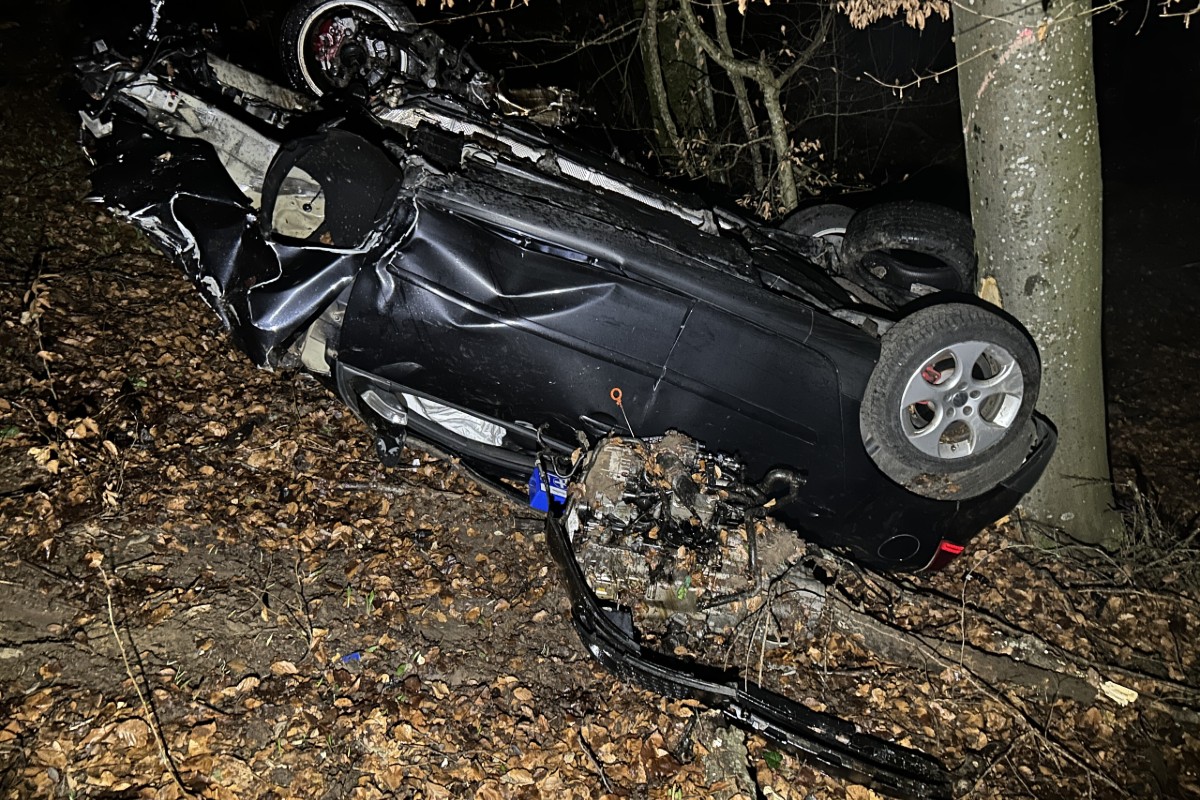 schwarzen VW Golf wurde bei der Kollision mit einem Baumstrunk sogar aus dem Fahrzeug
