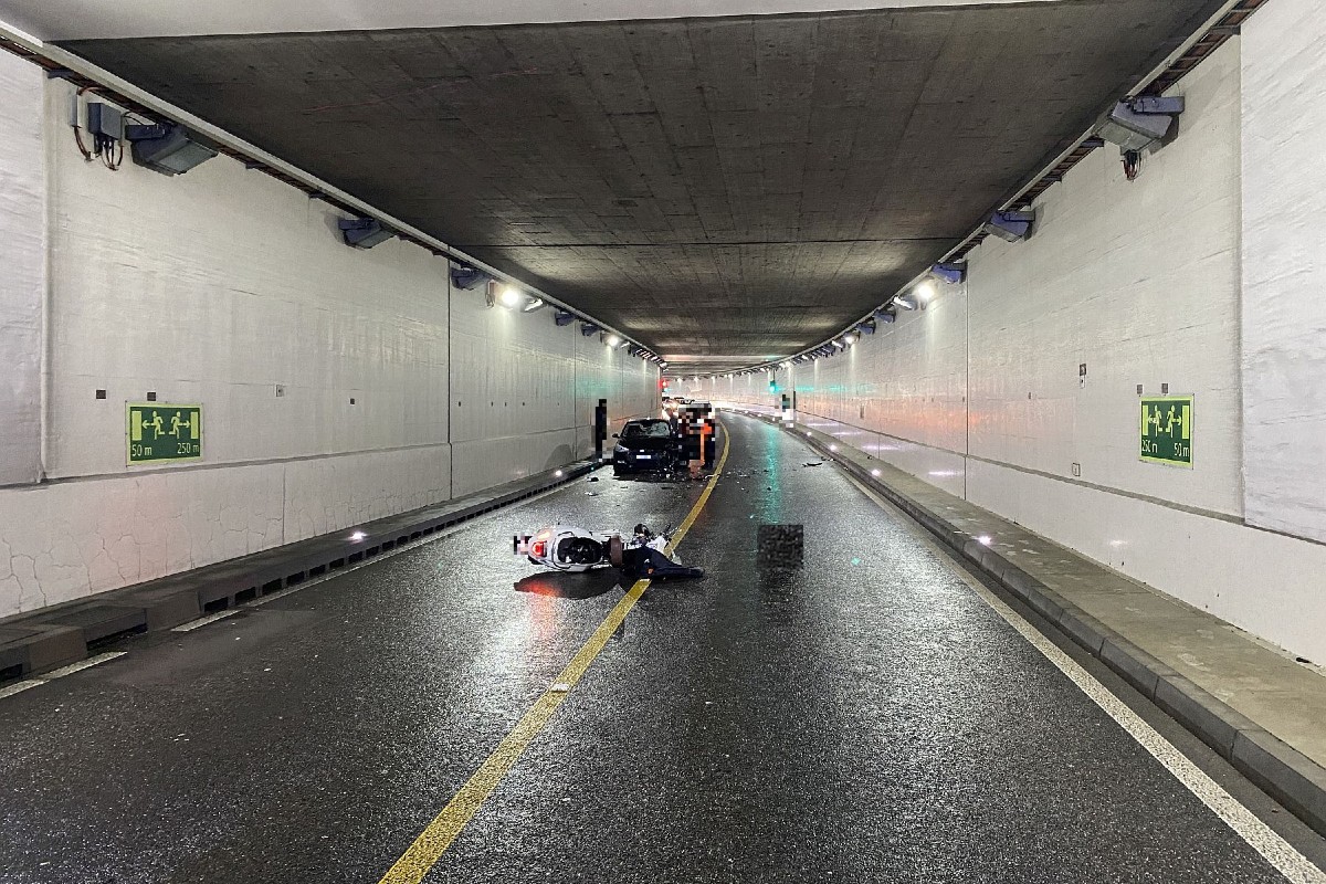 Die Motorradlenkerin wechselte im Tunnel aus noch nicht restlos geklärten Gründen von der rechten Fahrspur auf die linke Fahrspur in den Gegenverkehr und kollidierte in der Folge frontal mit einem entgegenfahrenden Personenwagen.
