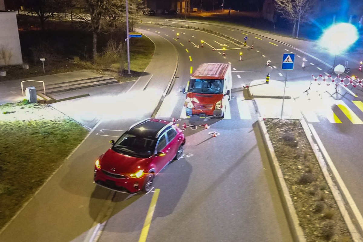 Ein nachfolgender Lieferwagenfahrer konnte nicht mehr rechtzeitig abbremsen und verursachte eine Auffahrkollision. Dabei wurde das Auto nach vorne geschoben und prallte in die beiden Personen auf dem Fussgängerstreifen.