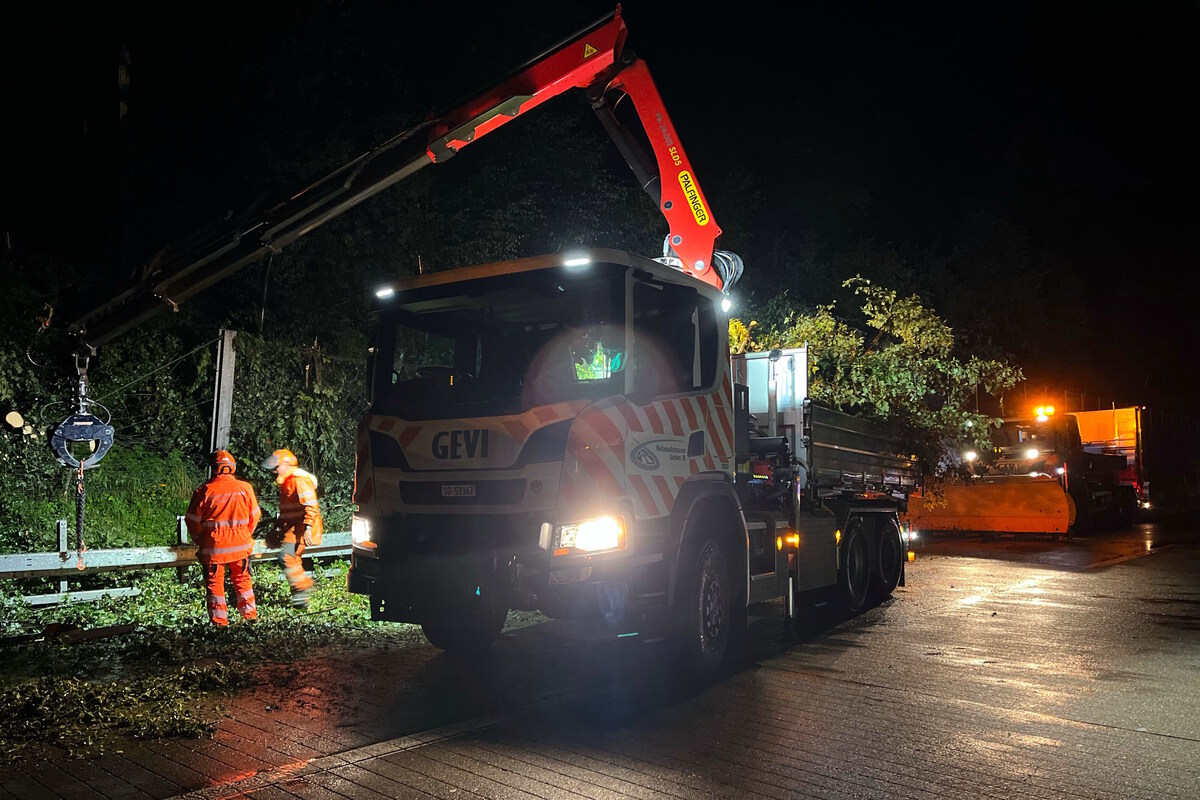 Ein heftiger Sturm hatte mehrere Bäume oberhalb der Autobahn umgeknickt und diese sind auf beide Fahrbahnen gefallen. Zusätzlich bedeckte Hagel die Fahrbahnen. Die zuständige Feuerwehr und der Nationalstrassenunterhalt entfernten die Bäume von der Fahrbahn. Die Autobahn A3 war kurzzeitig nicht mehr passierbar, konnte aber nach ersten Aufräumarbeiten wieder einstreifig in beide Fahrtrichtungen freigegeben werden. Personen wurden keine verletzt und auch an Fahrzeugen kam es nach jetzigen Erkenntnissen zu keinem Sachschaden.