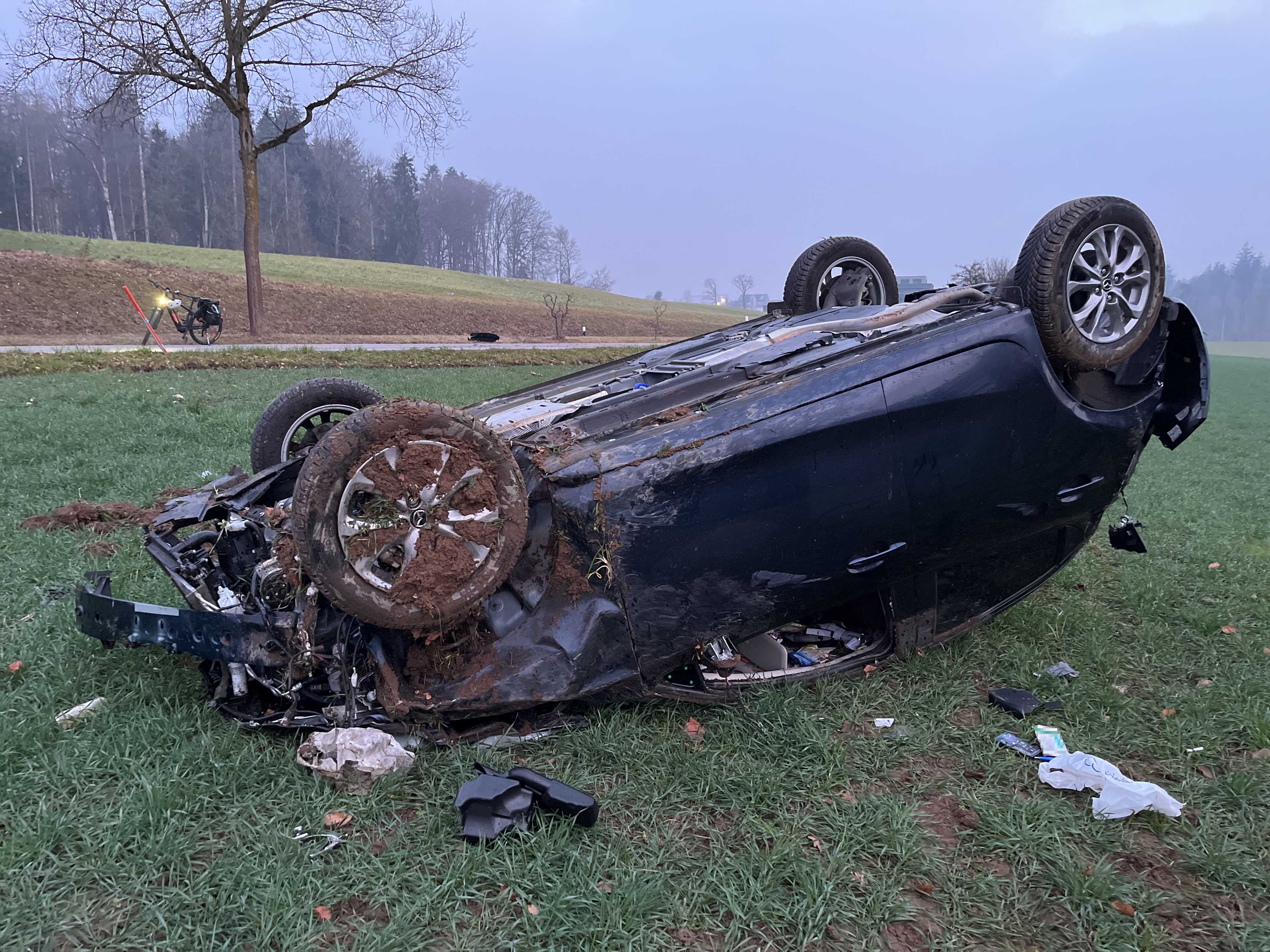 Personenwagen überschlägt sich nach Kollision mit Baum mehrfach (Bildquelle: Kapo AG)