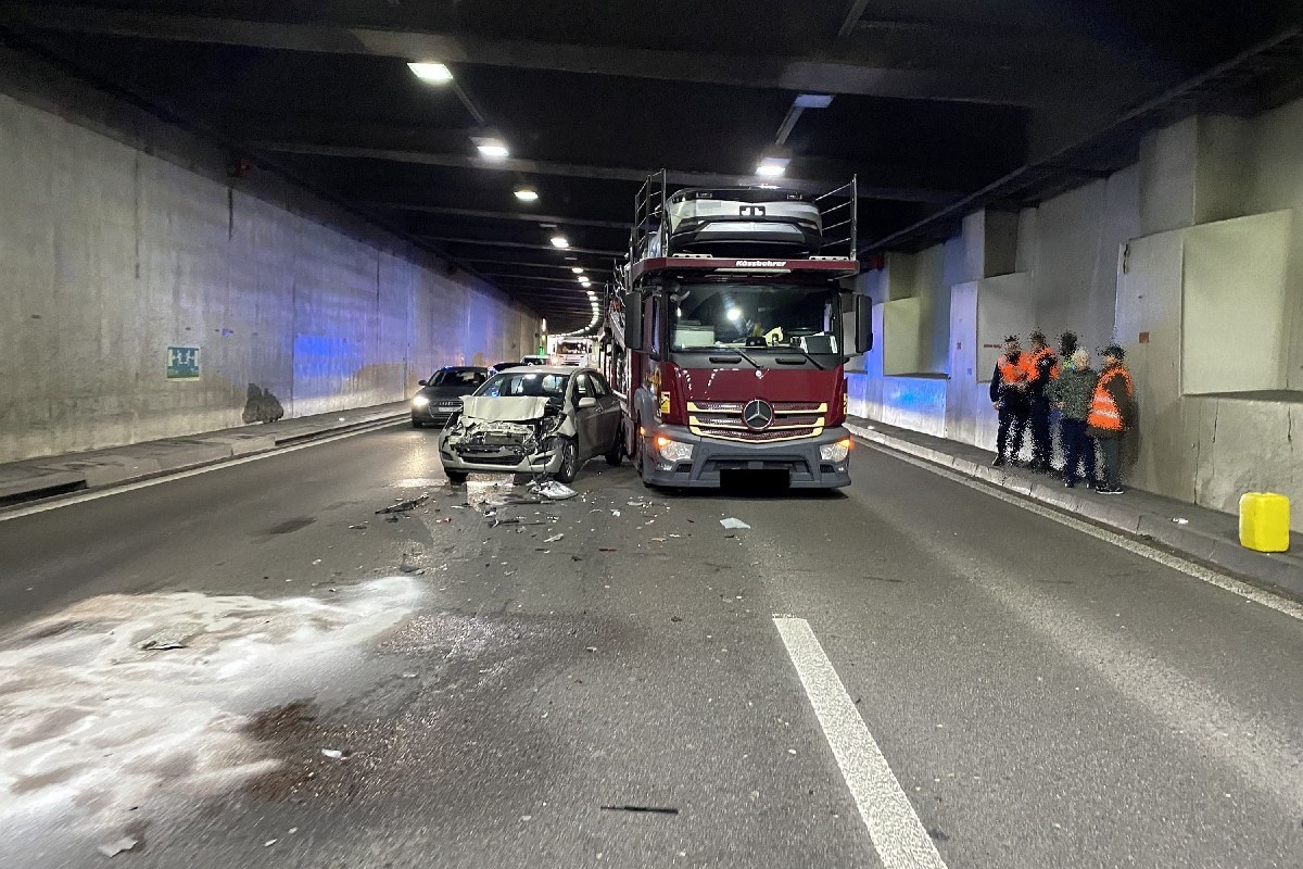 Am Dienstagmittag, 15. Februar 2022, kurz vor 13.00 Uhr, kam es auf der Autobahn A2, (Tunnel Schweizerhalle) in Muttenz BL, in Fahrtrichtung Bern/Luzern, zu einer Auffahrkollision mit insgesamt fünf involvierten Fahrzeugen. Verletzt wurde niemand. Es kam zu massiven Verkehrsbehinderungen.