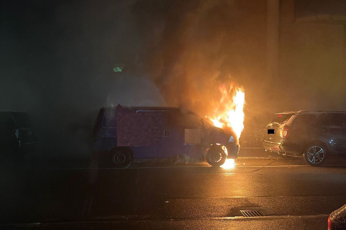 Beim Eintreffen der Einsatzkräfte stand der blaue Toyota Lieferwagen frontseitig bereits in Vollbrand. Durch die Feuerwehr konnte der Fahrzeugbrand unter Kontrolle gebracht und schlussendlich gelöscht werden.