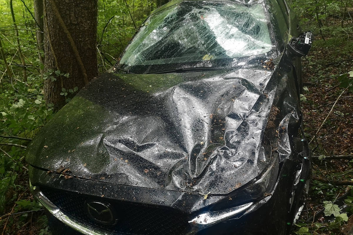 Unfallfahrzeug auf der Linsentalstrasse bei Sennhof (Bildquelle: Stadtpolizei Winterthur)
