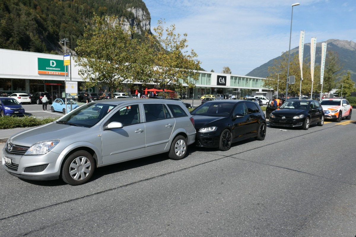 Die Lenkerin eines Personenwagens war in Näfels in Fahrtrichtung Netstal unterwegs. Die 20-Jährige bemerkte dabei zu spät, dass die beiden vor ihr fahrenden Autos vor dem zweiten Kreisel angehalten hatten.