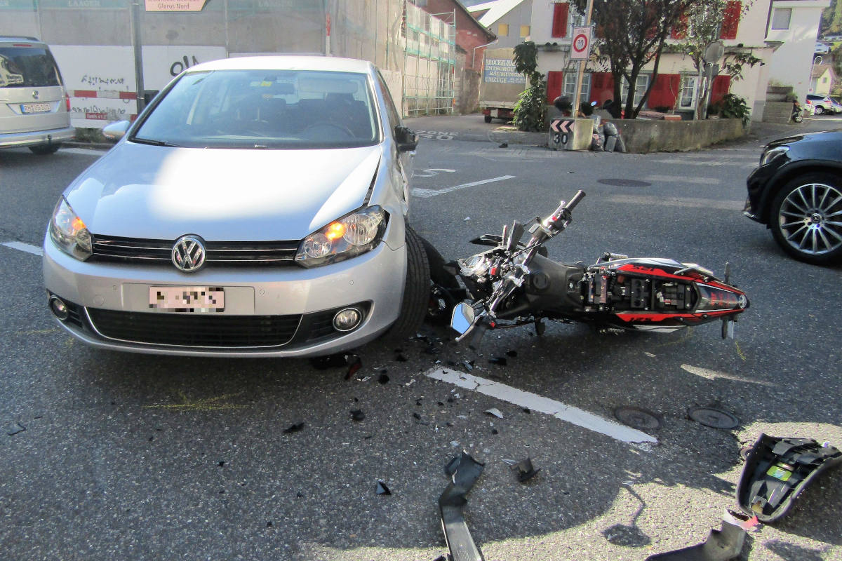 Auto erfasst Motorradfahrer in Näfels (Bildquelle: Kantonspolizei Glarus)