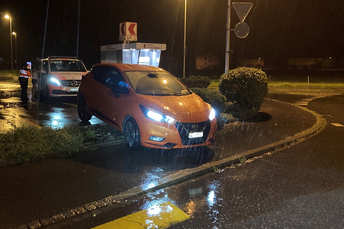 Die Lenkerin eines Personenwagens beabsichtigte von einem Parkplatz beim nördlichen Kreisel auf die Strasse zu fahren. Dabei geriet die 37-Jährige auf die Verkehrsinsel zwischen dem Parkplatz und dem angrenzenden Trottoir, wo das Auto in der Folge aufgebockt stehen blieb.