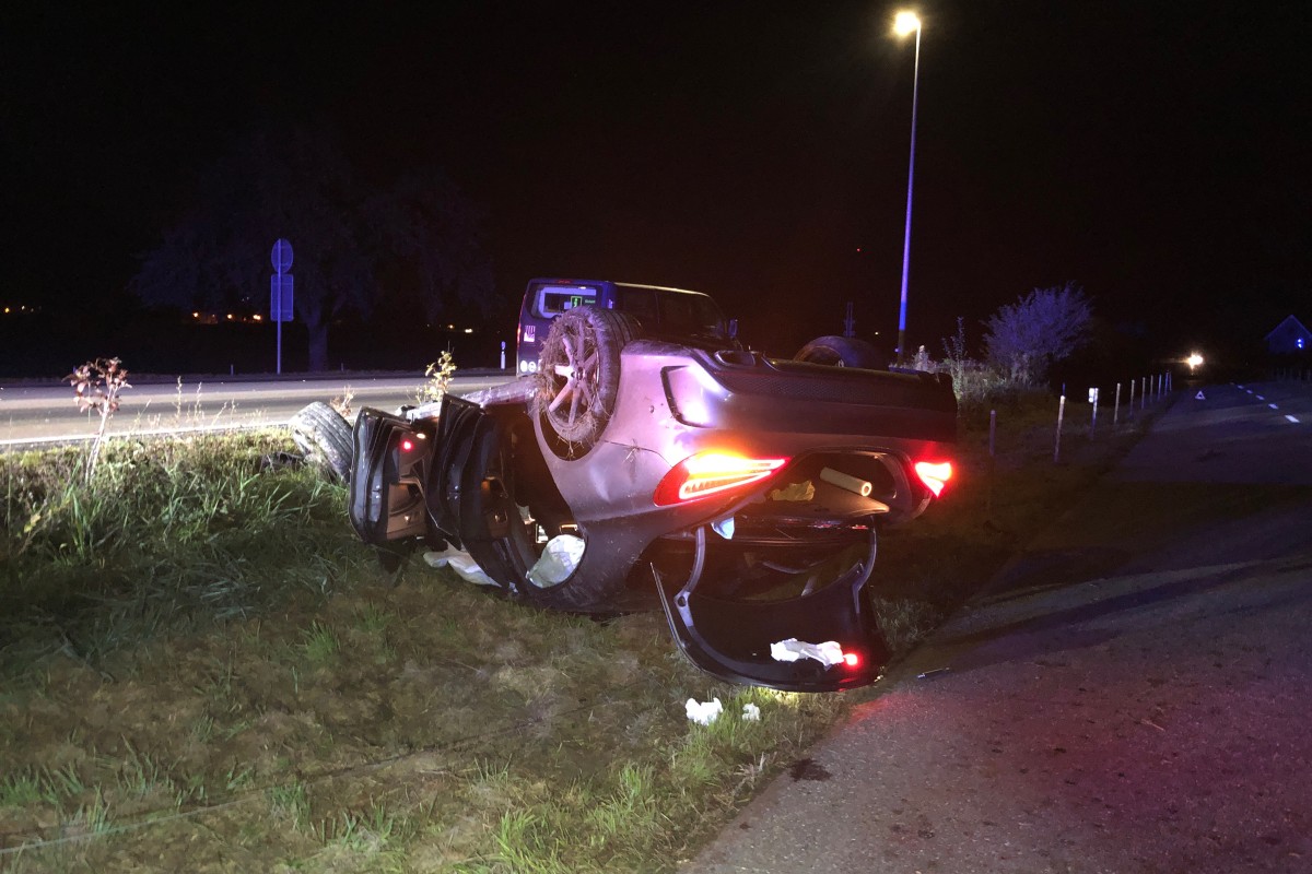 Die vier im Fahrzeug befindlichen Personen konnten sich selbständig aus dem Fahrzeug befreien. Lediglich der Beifahrer zog sich leichte Handverletzungen zu. Am Fahrzeug entstand Totalschaden.