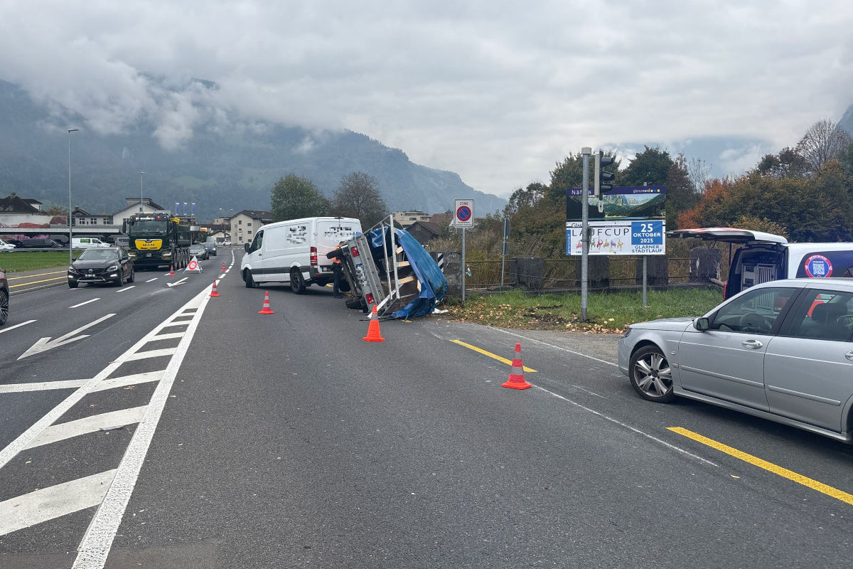 Am Donnerstag, 16. Oktober 2025, kam es in Näfels zu einem Unfall mit einem Lieferwagen. Der Anhänger des Fahrzeugs kippte um, da die Ladung beim Abbiegen verrutschte. Verletzt wurde niemand. Es entstand jedoch Sachschaden.