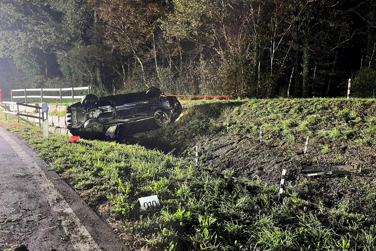 Kurz nach Mitternacht fuhr ein mit vier Personen besetzter Personenwagen auf der Umfahrungsstrasse von Neerach kommend in Richtung Glattfelden. In einer langgezogenen Linkskurve geriet der 21-jährige Schweizer mit seinem Fahrzeug über den rechten Fahrbahnrand hinaus, überschlug sich und blieb neben der Fahrbahn auf dem Dach liegen. Er und seine 23-jährige Beifahrerin wurden bei dem Unfall leicht verletzt. Die beiden 18 und 19 Jahre alten Männer auf den Rücksitzen erlitten dagegen schwere Verletzungen. Einer von ihnen wurde im Fahrzeug eingeklemmt und musste von der Feuerwehr befreit werden. Nach der medizinischen Erstversorgung vor Ort wurden eine Person mit dem Rettungshelikopter und drei Verletzte mit Rettungswagen in verschiedene Krankenhäuser gebracht.