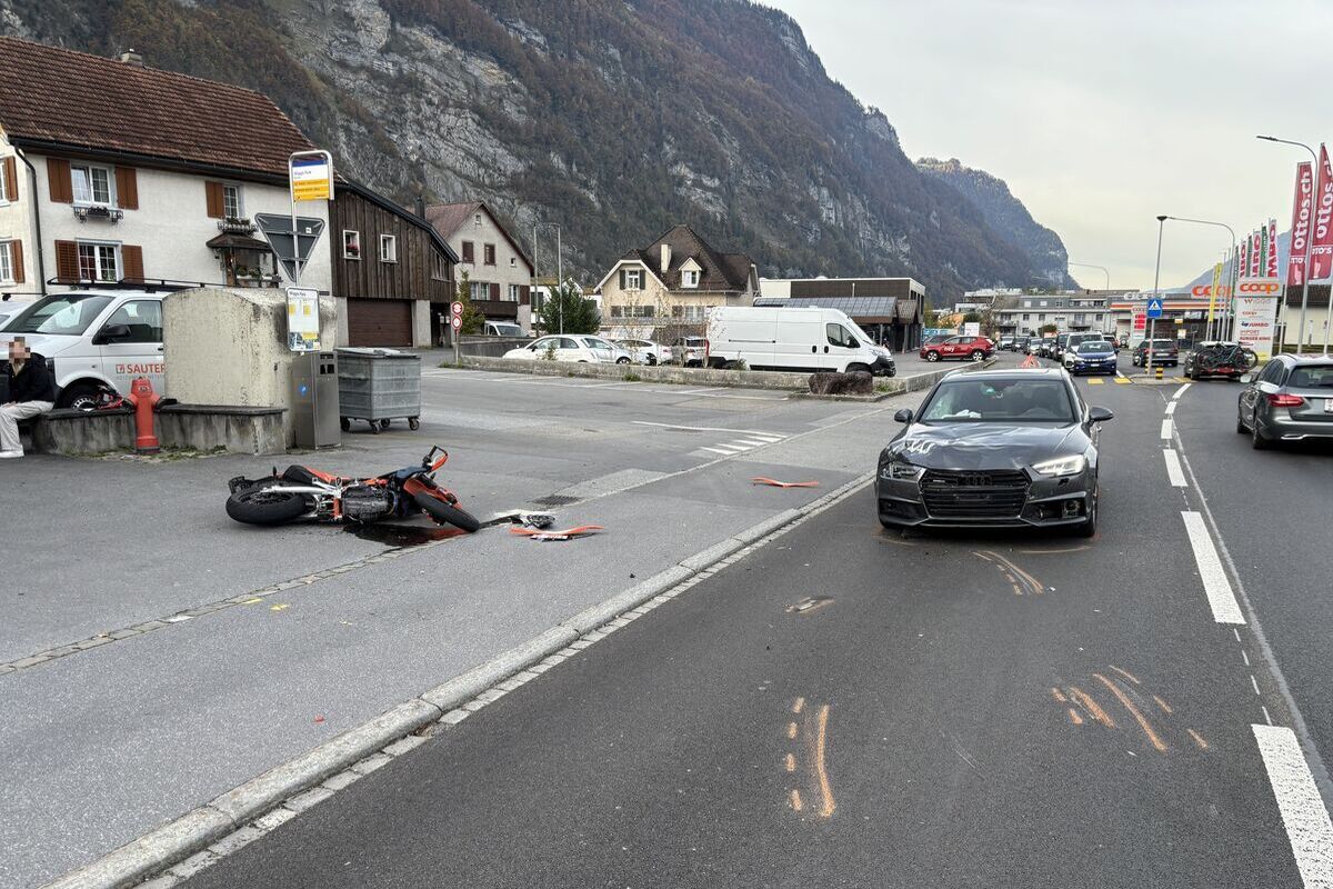 Ein 21-jähriger Motorradfahrer, der von Glarus Richtung Näfels unterwegs war, verlor beim Ausführen eines sogenannten «Wheelie» die Kontrolle über sein Fahrzeug. Infolgedessen geriet er auf die Gegenfahrbahn und kollidierte mit einem korrekt entgegenkommenden Personenwagen, der von einem 31-jährigen Mann gelenkt wurde.
