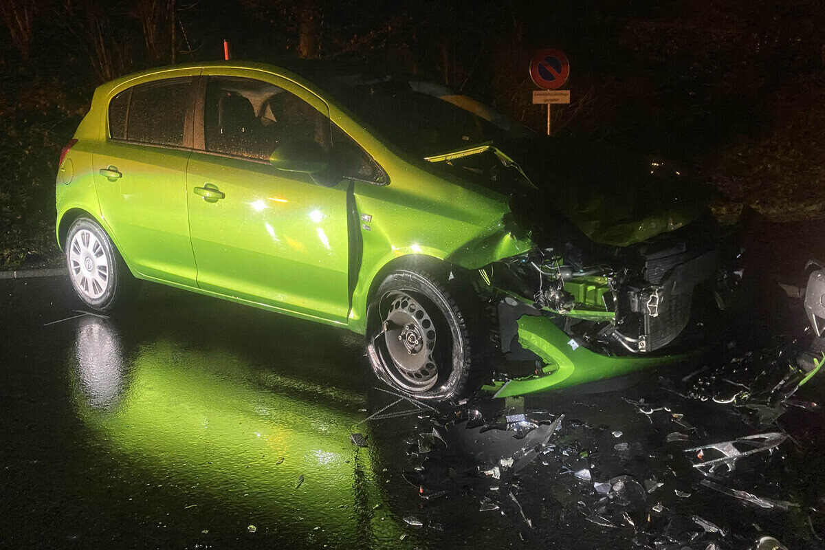 Das grüne Auto wurde bei der Frontalkollision stark beschädigt (Bildquelle: Polizei Zug)