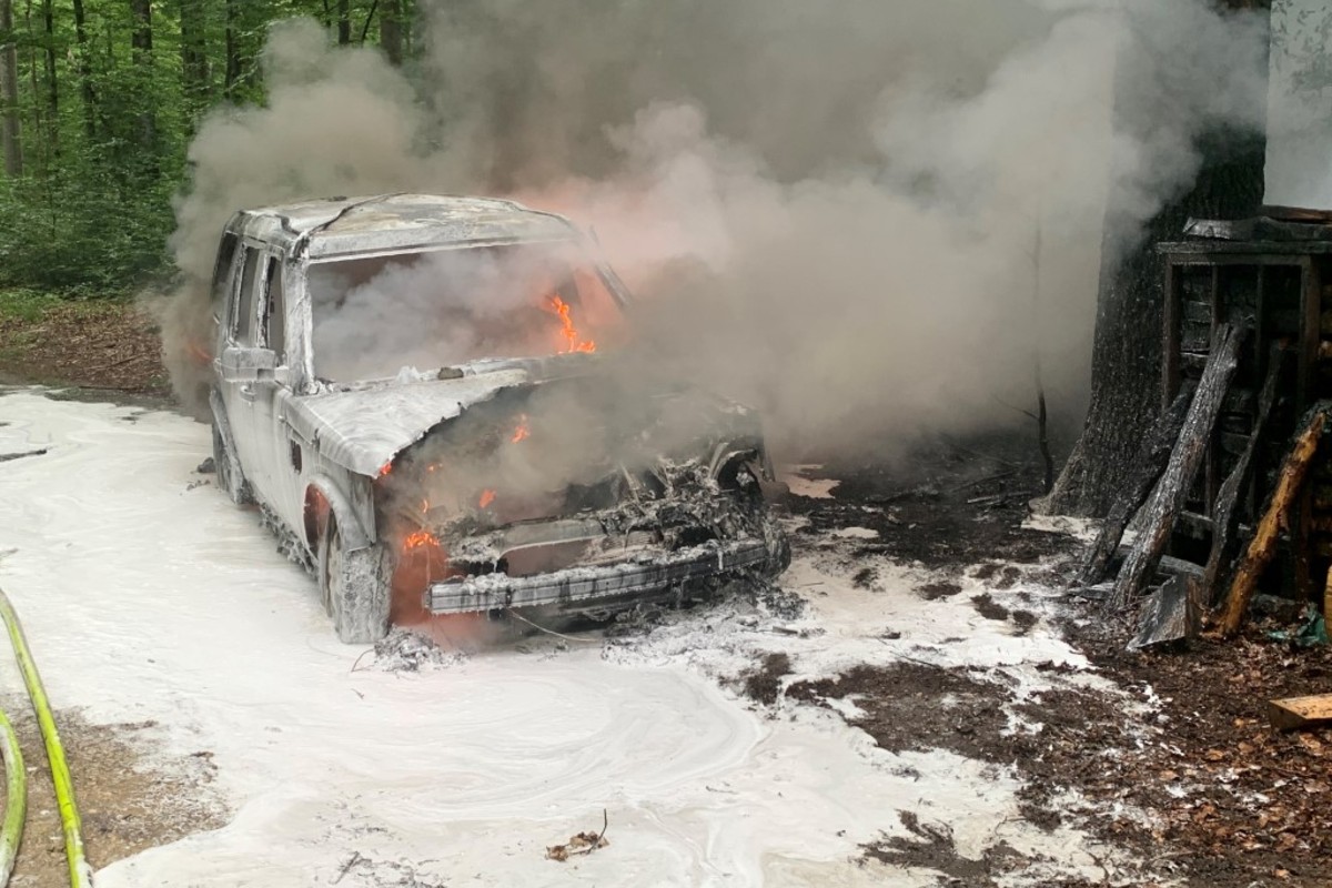 Am späteren Freitagnachmittag (26.06.2020) ist es in einem Waldstück bei Neunkirch SH zu einem Fahrzeugbrand gekommen. Personen wurden keine verletzt.