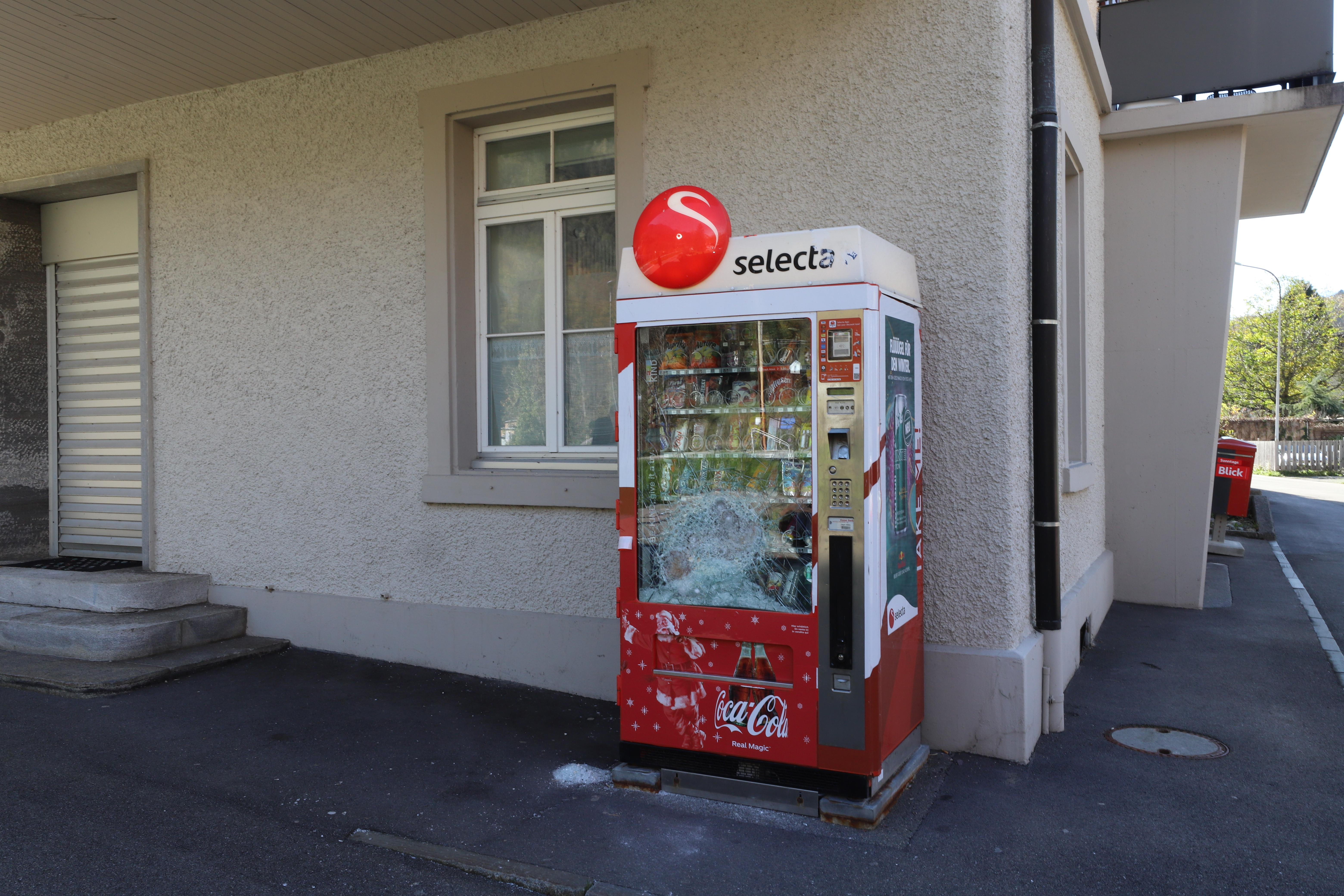 Selecta-Warenautomat aufgebrochen am Bahnhof Nidfurn-Haslen (Bildquelle: Kapo GL)