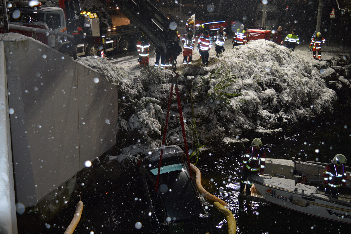 Fahrzeug in einer scharfen Rechtskurve geradeaus in den See rutschte. Die beiden Insassen