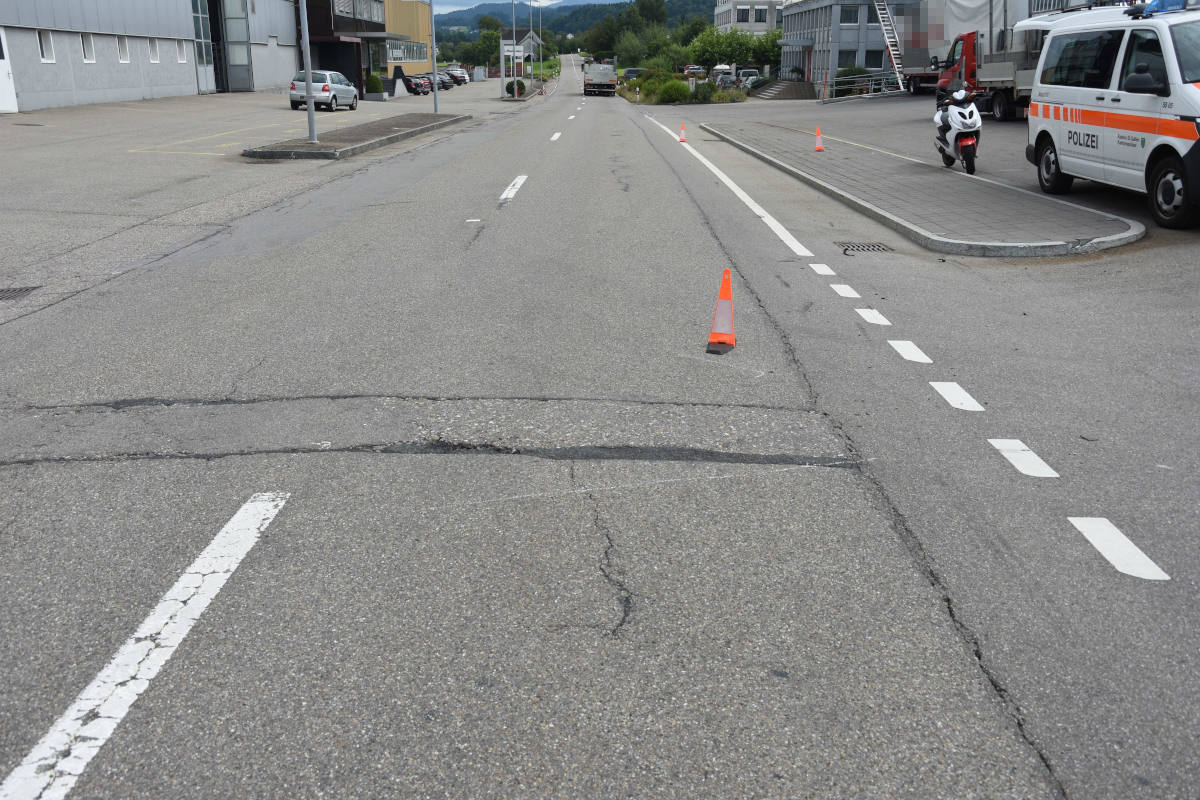 Als der Lastwagen nach links abbog kam es zur Kollision zwischen dem Lastwagen und dem Roller. Die Rollerfahrerin stürzte und zog sich schwere Verletzungen zu. Sie wurde vom Rettungsdienst ins Spital gebracht. An den beiden Fahrzeugen entstand Sachschaden von rund 3'500 Franken.