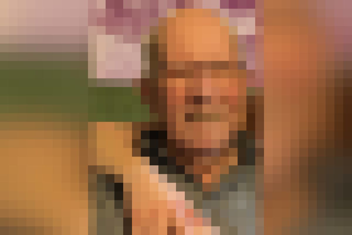- trägt dunkelblaue Hosen