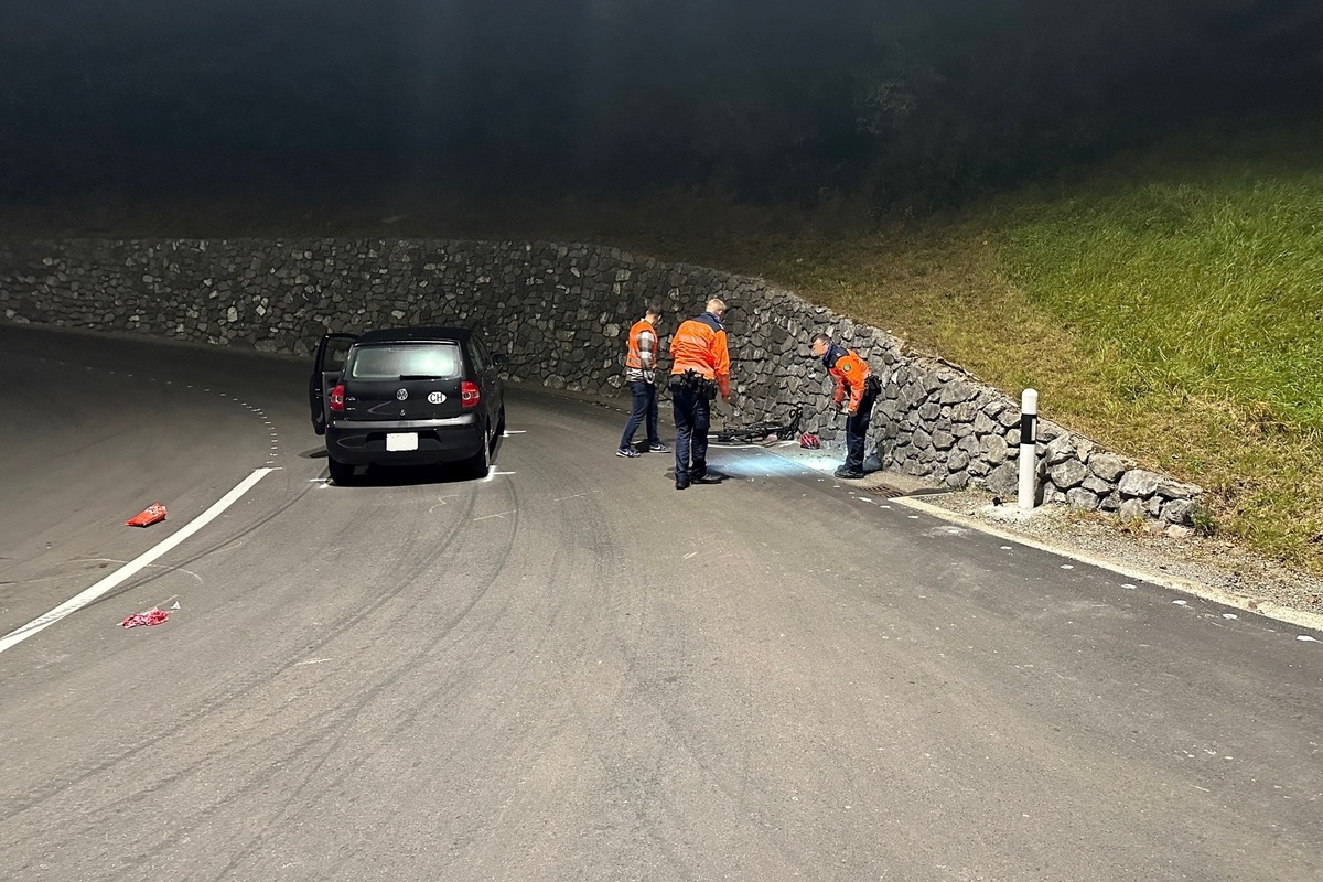 Kurz nach 20.00 Uhr fuhr ein 34-Jähriger mit seinem Auto von Stein in Richtung St. Gallen. In Niederteufen, im Bereich der ARA, beabsichtige der Autofahrer nach links auf die Battenhusstrasse einzulenken. Im Verzweigungsbereich kam es zu einer Kollision mit einem Fahrradfahrer. Dabei erlitt der 61-jährige Rennradfahrer schwere Verletzungen im Kopfbereich. Er wurde durch den Rettungsdienst am Unfallort erstbetreut und anschliessend mit lebensbedrohlichen Verletzungen ins Spital überführt.