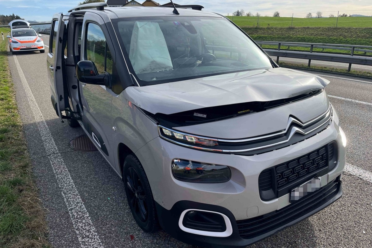 In Niederwil kam es zu einer Auffahrkollision auf der A1 wegen einer Person. (Bildquelle: Kantonspolizei St. Gallen)