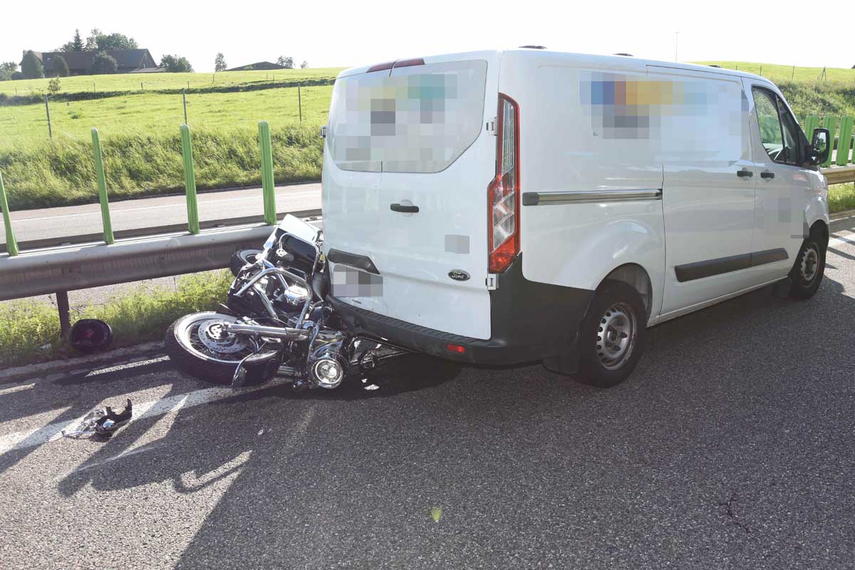 Als dieser verkehrsbedingt sein Lieferwagen abbremsen musste, leitete auch der 35-Jährige ein Bremsmanöver ein. Dabei verlor er die Kontrolle über sein Motorrad und prallte mit diesem in das Heck des Lieferwagens.