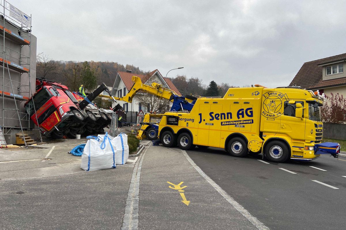 Am Freitagmorgen, 2. Dezember 2022, war eine Firma mit Kranarbeiten bei einer Baustelle an der Hertensteinstrasse in Nussbaumen beschäftigt. Kurz vor 10:00 Uhr kippte ein fünfachsiger, 48 Tonnen schwerer Pneukran, welcher eine Last am Anheben war, auf die Seite.