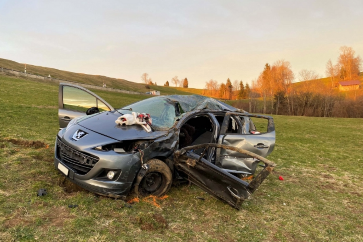 Rund eine Stunde später hat sich auf der Ratenstrasse in Oberägeri ein Selbstunfall ereignet. Ein Fahrzeuglenker ist von Oberägeri bergwärts in Richtung Biberbrugg gefahren, als er aus noch ungeklärten Gründen in einer Linkskurve von der Strasse abkam und eine Böschung hinunterstürzte. Dabei hat sich das Fahrzeug mehrfach überschlagen und kam nach rund 75 Metern auf einer Wiese zum Stillstand.