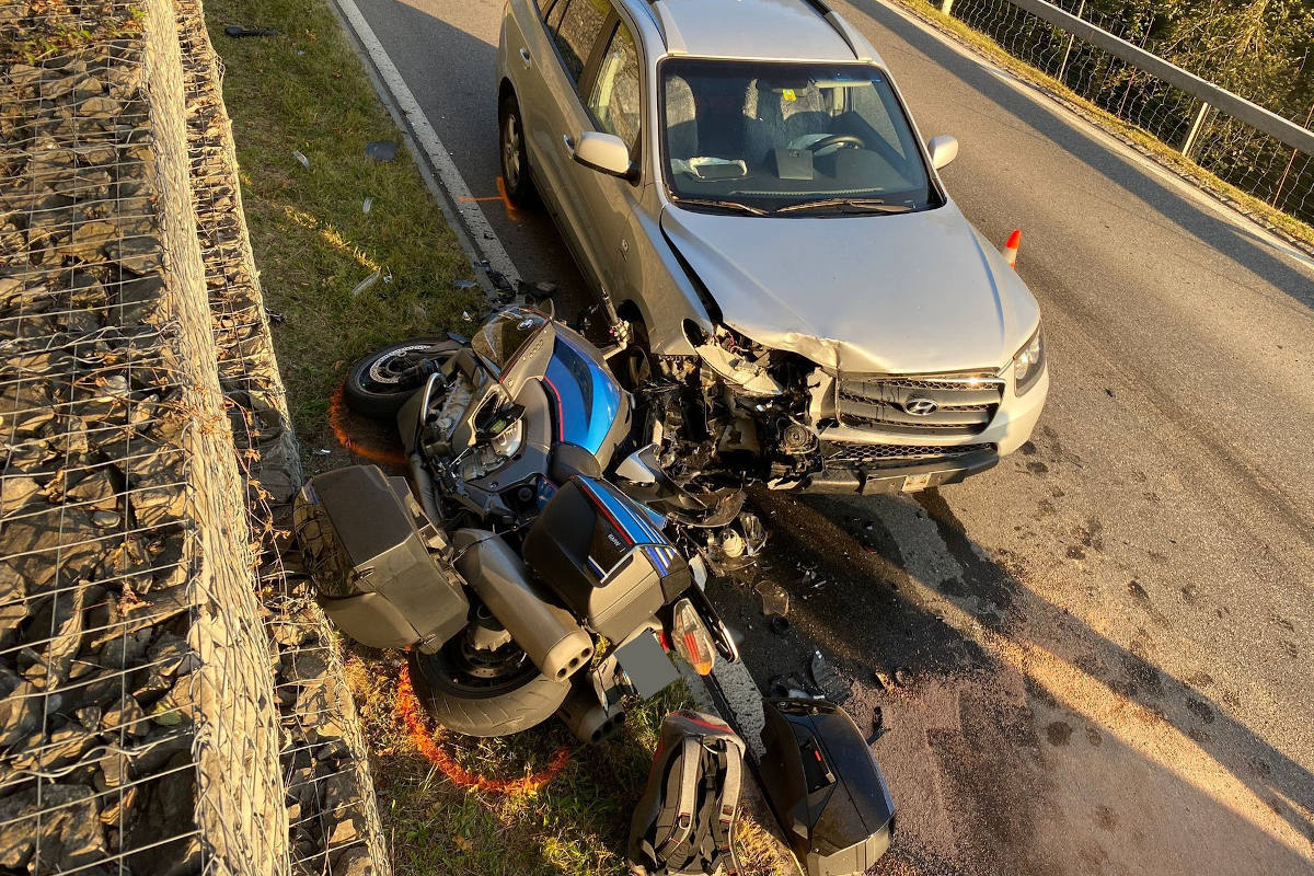 Motorradfahrer bei Kollision mit Auto verletzt in Oberägeri (Bildquelle: Zuger Polizei)
