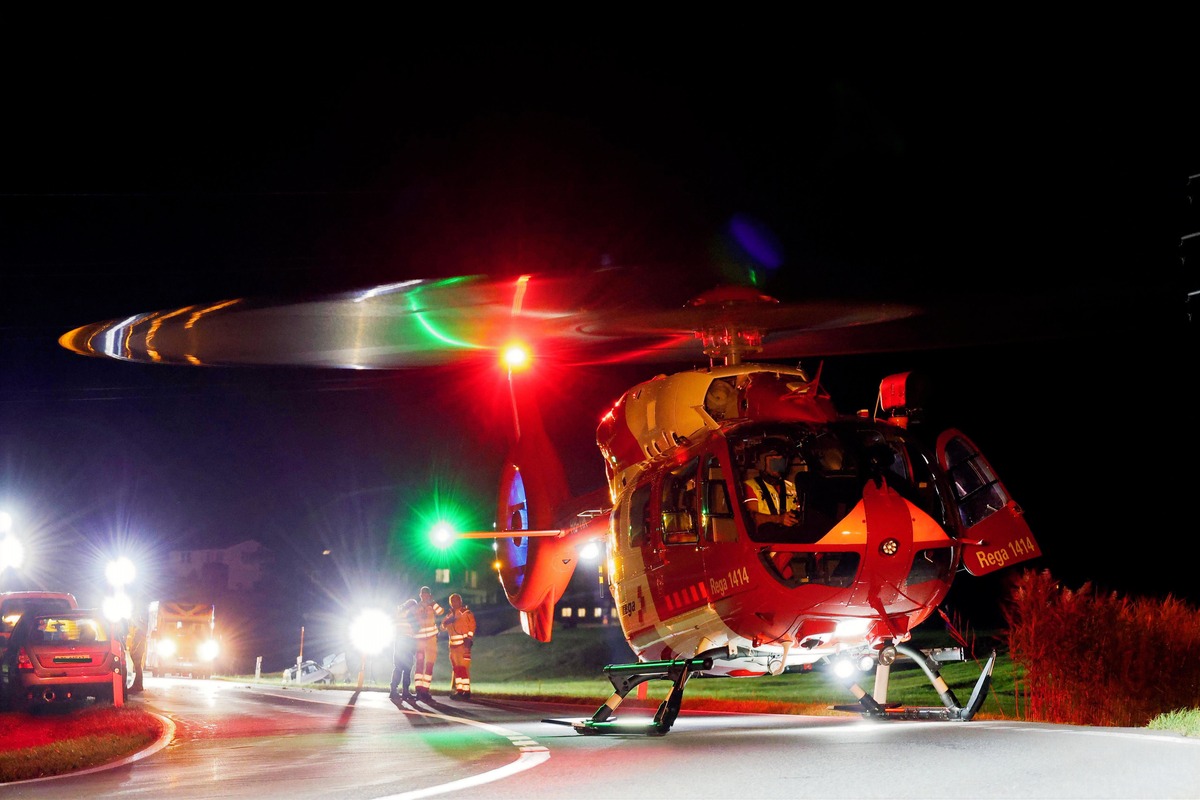 Zufolge dieser Kollision kam das überholende Auto linksseitig von der Strasse ab und geriet in einen angrenzenden Bachgraben, wo es zum Stillstand kam. Der 33-jährige Lenker wurde dabei erheblich verletzt und musste nach der Bergung mit einem Rettungshelikopter der Rega ins Spital geflogen werden. Die weiteren in den Unfall involvierten Fahrzeuglenker und deren Beifahrer blieben unverletzt.