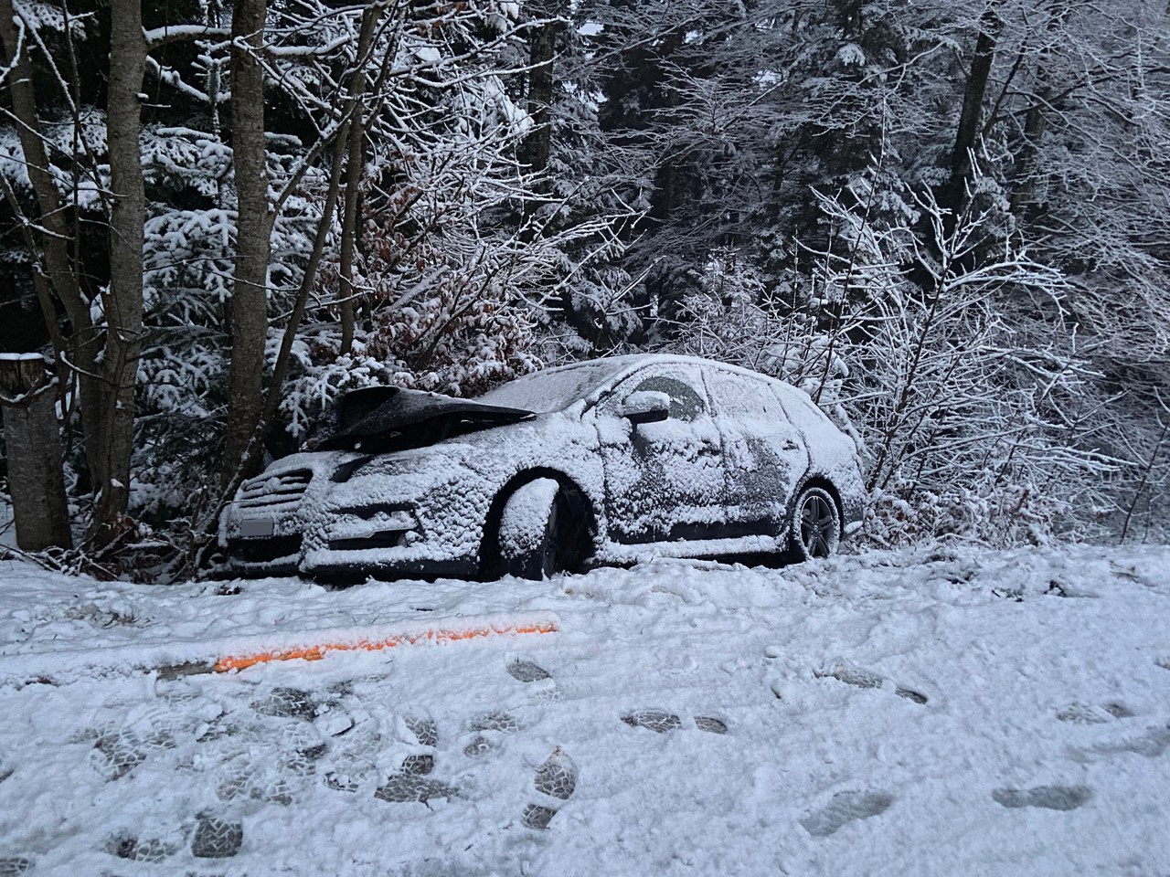 Oberägeri ZG – Selbstunfall auf schneebedeckter Strasse