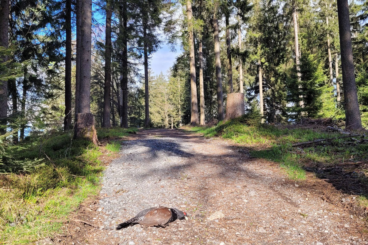 Trotz eingeleiteter Schutzmassnahmen wurde gestern im Gebiet Höhronen – Gutschwald ein Auerhahn tot aufgefunden. Da menschliche Einwirkung momentan als wahrscheinlichste Totdesursache gilt, wird Anzeige gegen Unbekannt erstattet.