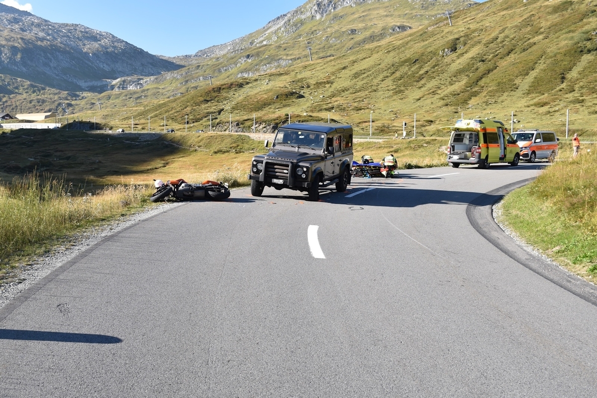 Am Oberalppass in Tujetsch geriet am Sonntagnachmittag ein Motorradfahrer in einer Kurve auf die Gegenfahrspur. Bei dem Unfall mit einem Auto aus der Gegenrichtung wurde er mittelschwer verletzt.
