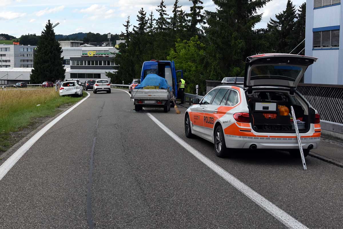 Am Montagabend (05.07.2021), kurz nach 17:30 Uhr, ist auf der Autobahn A1, Fahrtrichtung Gossau-Oberbüren, ein Lieferwagen auf ein Auto aufgefahren. Dieses kollidierte aufgrund dessen mit dem vor ihm stehenden Auto. Der 34-jährige unfallverursachende Fahrer war alkoholisiert.