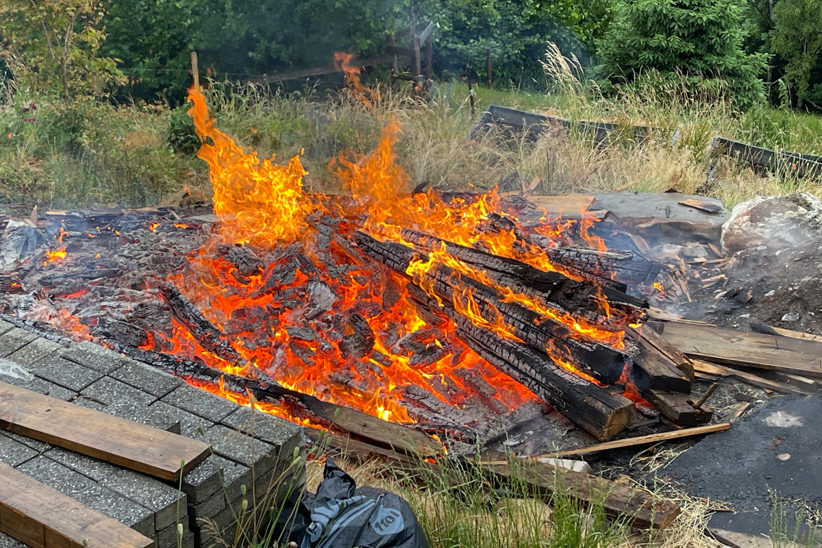 Gestern, 23.06.2023, hat ein Mann alte Holzbalken und Bretter verbrannt.