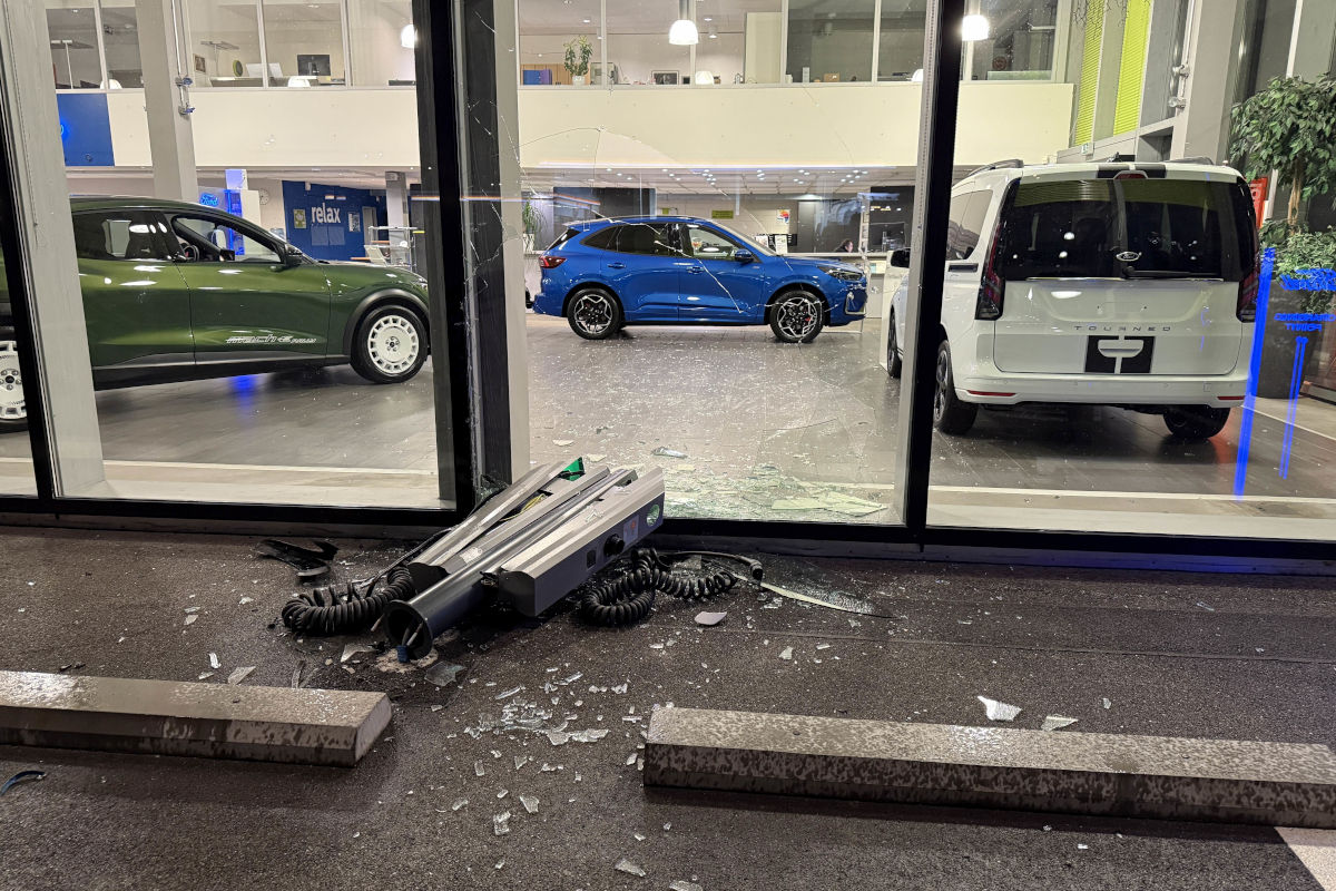 Betroffen war das Autocenter Gräub an der Industriestrasse in Oberentfelden. Dessen Personal fand am Dienstagmorgen, 25. November 2025, bei Arbeitsbeginn eines der grossen Glasfenster des Ausstellungsraumes eingeschlagen vor. Dazu lag eine der Ladesäulen ausgerissen am Boden. Der angerichtete Sachschaden ist beträchtlich.