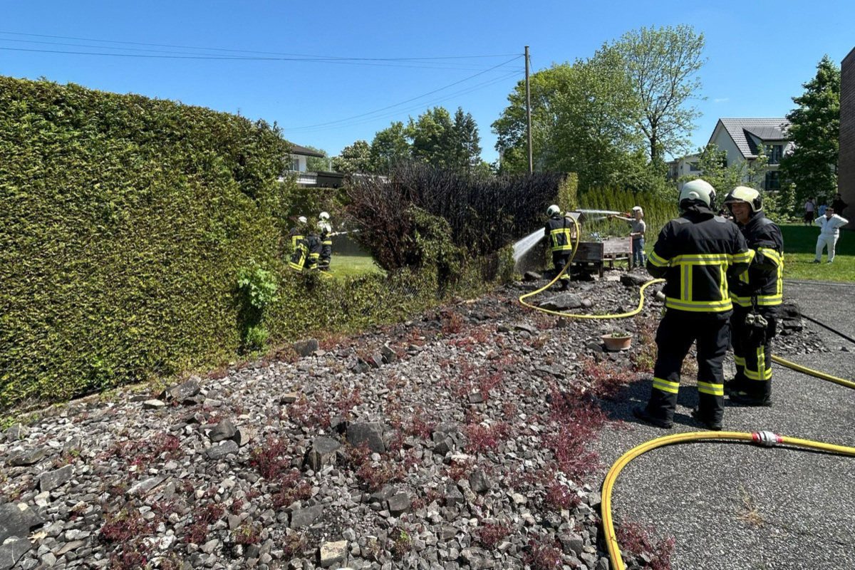 Mit Hilfe von Nachbarn versuchte der Mann, dem Brand mit dem Gartenschlauch und einer Giesskanne beizukommen. Die Flammen breiteten sich aber rasch aus, so dass nur noch die Feuerwehr den Brand löschen konnte. Die Hecke brannte auf einer Länge von rund 20 Metern nieder. Immerhin konnte die Feuerwehr verhindern, dass die Flammen zur Gefahr für das Haus werden konnten.