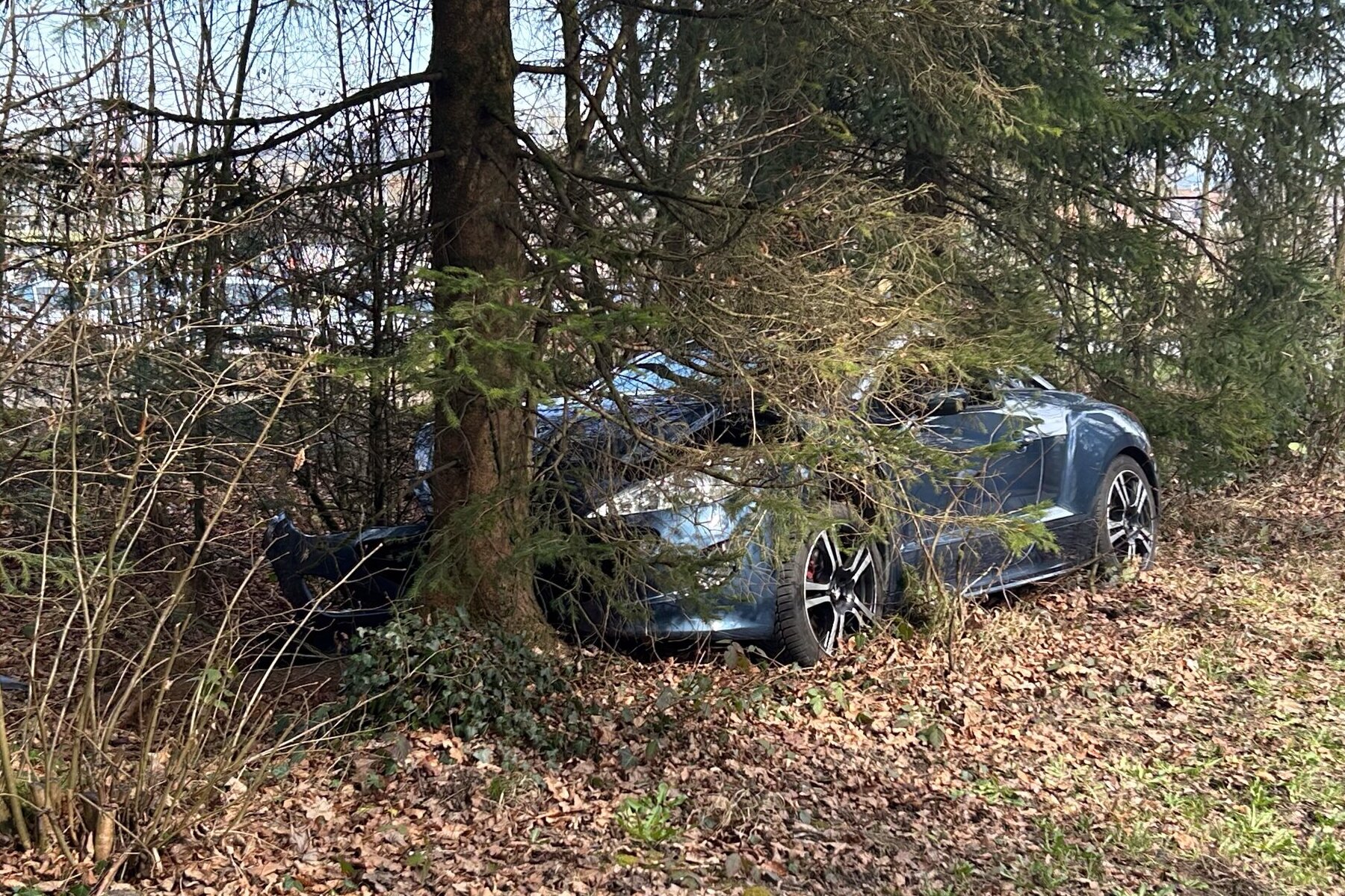 Durch die Kollision mit dem Baum kam der Peugeot schlussendlich zum Stillstand. Am Fahrzeug entstand Sachschaden.