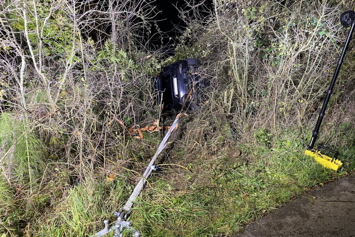 Kontrolle verloren und in Böschung gelandet– beinahe Absturz über Berghang (Bildquelle: SHPol)